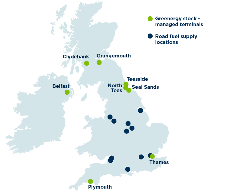 Our national footprint minimises transport distances between our storage terminals and our customers’ sites, so we can ensure cost effective and reliable supply.