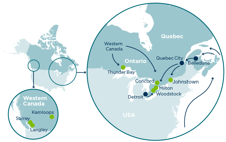 In Canada, Greenergy has sea and rail-fed terminals, along with storage locations in British Columbia, Ontario, Quebec, New Brunswick and the US mid-west.
